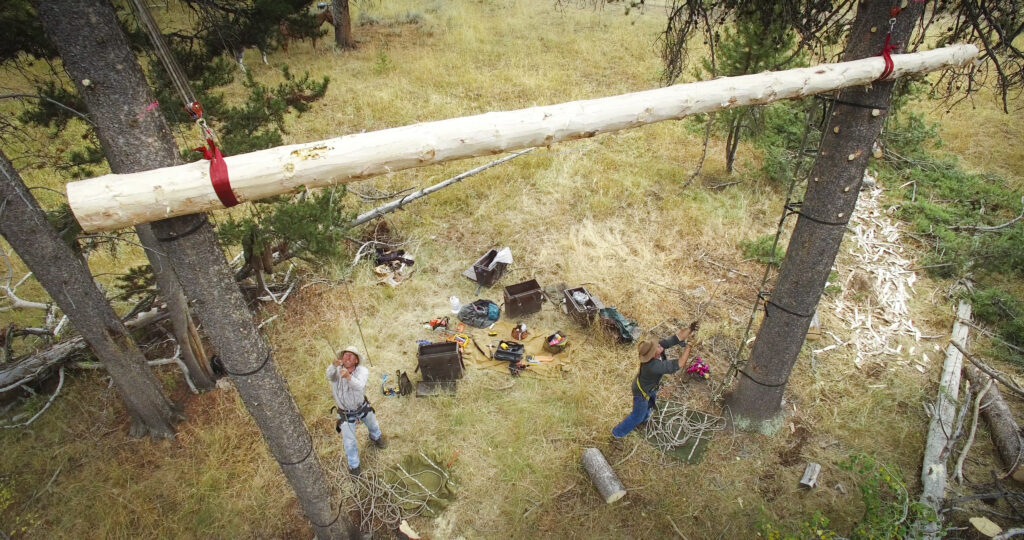 The non-profit People & Carnivores hired Conservation Media to help tell the story of its quiet predator co-existence work in the backcountry of Wyoming, Idaho, and Montana. Among the many conflict resolutions P&C work toward is the installation of backcountry bear poles at traditional hunting encampments. These poles provide backcountry users (hunters and backpackers too!) a place to hang bear attractants, including heavy meat, out of the reach of grizzly and black bears, thus reducing potentially fatal conflict.